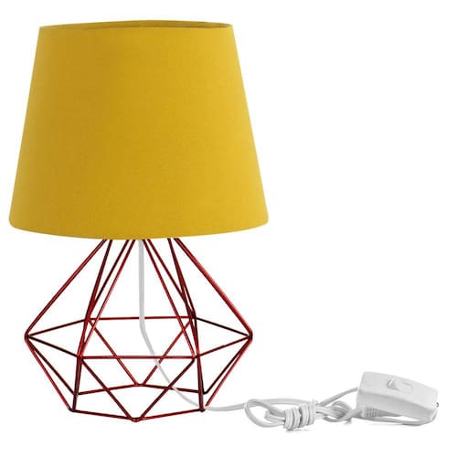 Abajur Diamante Dome Mostarda Com Aramado Cereja
