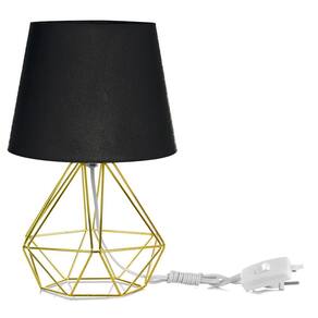 Abajur Diamante Dome Preto Com Aramado Dourado