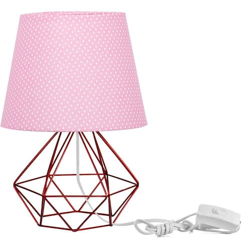 Abajur Diamante Dome Rosa Bolinha Com Aramado Cereja