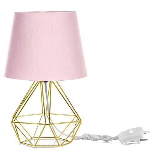 Abajur Diamante Dome Rosa Com Aramado Dourado