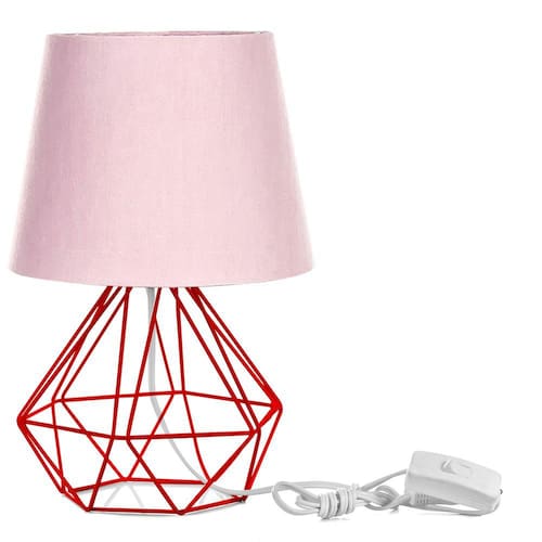 Abajur Diamante Dome Rosa Com Aramado Vermelho