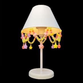 - cúpula de polipropileno plástico resistente na cor branco; - base em acrílico branco; - haste de acrílico branco; - pingentes de estrelas, balinhas, bolinhas neon; - altura total do abajur 30 cm; - diâmetro maior da cúpula mede 17 cm; - soquete para lâmpadas modelo e-27 bivolt aceita lâmpadas 110v e 220v ; - usar lâmpada de no máximo 40w lâmpada não incluso ; - importante: imagens reais do produto, porém as cores dos pingentes e pérolas podem variar de acordo com cada produto fabricado, conforme disponibilidade Do estoque