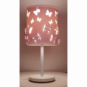 Abajur Infantil Borboletas Duplo 20x41cm Rosa/Branco. Abajur BORBOLETAS 20x41 Marca: Tom Luz Medida da Cúpula 20x23 Cúpula externa produzida em PET Fléxivel (COR: Branca) Cúpula interna produdiza em PSAI de Alto Impacto e revestida em tecido (algodão ROSA) Capacidade para 1 Lâmpada LED rosca comum E-27 (não inclusa); Fio de energia (1,20M) - c/ botão liga/desliga Base em alumínio com pintura epóxi branca Bivolt (110/220) Embalagem: Caixa de papelão