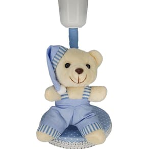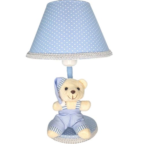 Lindo abajur em tecido com um ursinho na base para o quarto do bebê, ideal para deixar o ambiente com funcionalidade e muito mais charme e beleza.