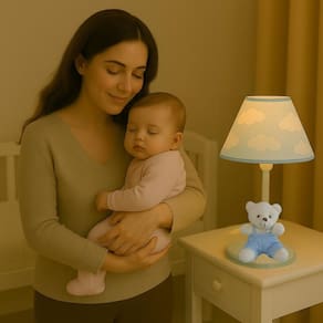 Transforme o quartinho do seu bebê em um verdadeiro reino de ternura com este lindo Abajur Nuvem Com um design delicado e encantador, ele combina perfeitamente com decorações nos temas Ursinho ou Nuvens, criando um ambiente aconchegante e acolhedor. Ideal para mesas de apoio, cômodas, dentre outros, o abajur proporciona uma iluminação suave, perfeita para momentos de amamentação, troca de fraldas ou para deixar o bebê mais tranquilo durante a noite. Destaques do Produto: Modelo: Nuvem Iluminação suave, ideal para o quarto do bebê Base estável e estrutura resistente Acabamento delicado e artesanal Combina com diversos temas infantis Ótima opção de presente para chá de bebê, nascimento ou batizado Especificações Técnicas: Voltagem: 110V/220V ou bivolt Tipo de lâmpada: ex: LED ou incandescente - não inclusa Material: MDF, tecido Lindo abajur infantil em tecido com um ursinho na base para o quarto do bebê ou criança, ideal para deixar o ambiente com funcionalidade e muito mais charme e beleza. O abajur é ideal para proporcionar uma luz suave e reconfortante durante a noite, ajudando as crianças a se sentirem mais seguras e tranquilas enquanto dormem. O abajur infantil vai deixar o quarto pronto para a chegada do bebê em casa O abajur infantil e para bebês é uma ótima opção para adicionar um toque aconchegante e alegre ao quarto dos pequenos. Onde usar: Poderá ser colocado na cômoda ou mesa Contém:1 Abajur - com iluminação suave, ajuda as mamães a cuidar do bebê à noite. Composição: Abajur com cúpula de polipropileno plástico , revestido por tecido 100% algodão. Base de madeira revestida de tecido Metragem: Abajur 30cm altura Cúpula 10cm x 18cm Bivolt: 110V ou 220V Lâmpada: usar de no máximo 40W não inclusa lâmpada de bolinha Tamanho fio 90 cm com liga / desliga Conteúdo da embalagem: 1 abajur com urso na base Limpeza: Basta limpar com espanador ou pano seco.