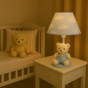 Transforme o quartinho do seu bebê em um verdadeiro reino de ternura com este lindo Abajur Nuvem Com um design delicado e encantador, ele combina perfeitamente com decorações nos temas Ursinho ou Nuvens, criando um ambiente aconchegante e acolhedor. Ideal para mesas de apoio, cômodas, dentre outros, o abajur proporciona uma iluminação suave, perfeita para momentos de amamentação, troca de fraldas ou para deixar o bebê mais tranquilo durante a noite. Destaques do Produto: Modelo: Nuvem Iluminação suave, ideal para o quarto do bebê Base estável e estrutura resistente Acabamento delicado e artesanal Combina com diversos temas infantis Ótima opção de presente para chá de bebê, nascimento ou batizado Especificações Técnicas: Voltagem: 110V/220V ou bivolt Tipo de lâmpada: ex: LED ou incandescente - não inclusa Material: MDF, tecido Lindo abajur infantil em tecido com um ursinho na base para o quarto do bebê ou criança, ideal para deixar o ambiente com funcionalidade e muito mais charme e beleza. O abajur é ideal para proporcionar uma luz suave e reconfortante durante a noite, ajudando as crianças a se sentirem mais seguras e tranquilas enquanto dormem. O abajur infantil vai deixar o quarto pronto para a chegada do bebê em casa O abajur infantil e para bebês é uma ótima opção para adicionar um toque aconchegante e alegre ao quarto dos pequenos. Onde usar: Poderá ser colocado na cômoda ou mesa Contém:1 Abajur - com iluminação suave, ajuda as mamães a cuidar do bebê à noite. Composição: Abajur com cúpula de polipropileno plástico , revestido por tecido 100% algodão. Base de madeira revestida de tecido Metragem: Abajur 30cm altura Cúpula 10cm x 18cm Bivolt: 110V ou 220V Lâmpada: usar de no máximo 40W não inclusa lâmpada de bolinha Tamanho fio 90 cm com liga / desliga Conteúdo da embalagem: 1 abajur com urso na base Limpeza: Basta limpar com espanador ou pano seco. Marca: Não Informado
