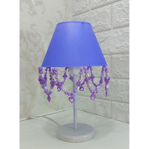 - cúpula de polipropileno plástico resistente na cor lilás; - base em acrílico branco; - haste de acrílico branco; - pingentes de coração lilás, pedrinhas roxas, emojis; - altura total do abajur 30 cm; - diâmetro maior da cúpula mede 17 cm; - soquete para lâmpadas modelo e-27 bivolt aceita lâmpadas 110v e 220v ; - usar lâmpada de no máximo 40w lâmpada não incluso ; - importante: imagens reais do produto, porém as cores dos pingentes e pérolas podem variar de acordo com cada produto fabricado, conforme disponibilidade Do estoque