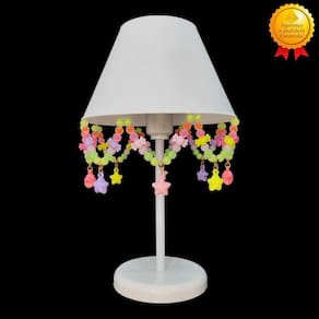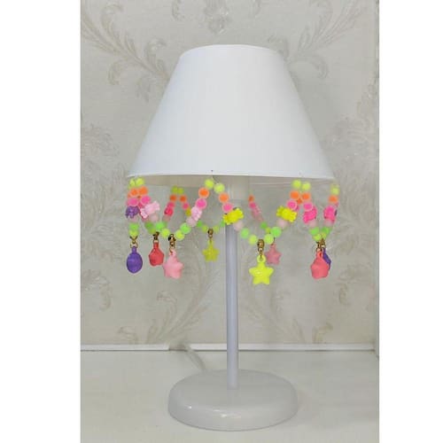 - cúpula de polipropileno plástico resistente na cor branco; - base em acrílico branco; - haste de acrílico branco; - pingentes de estrelas, balinhas, bolinhas neon; - altura total do abajur 30 cm; - diâmetro maior da cúpula mede 17 cm; - soquete para lâmpadas modelo e-27 bivolt aceita lâmpadas 110v e 220v ; - usar lâmpada de no máximo 40w lâmpada não incluso ; - importante: imagens reais do produto, porém as cores dos pingentes e pérolas podem variar de acordo com cada produto fabricado, conforme disponibilidade Do estoque