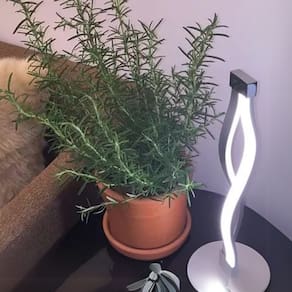 Com design geométrico e elegante, este modelo oferece três opções de temperatura de cor, adaptando-se a diferentes ambientes. Sua estrutura branca complementa qualquer decoração com sofisticação.