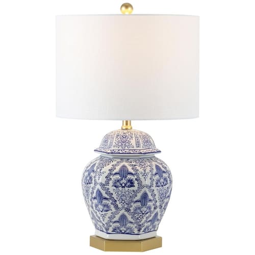 Base da lâmpada: E26 Dimensões do produto: 35,56 cm x 35,56 cm x 63,50 cm Peso do item: 3,58 quilos Estilo: Clássico, Tradicional Cor: Azul Branco Potência: 100 watts Brilho: 800 Lúmens Código UPC: 819727026732 Número do modelo: JYL3051A Marca: Não Informado