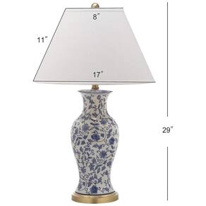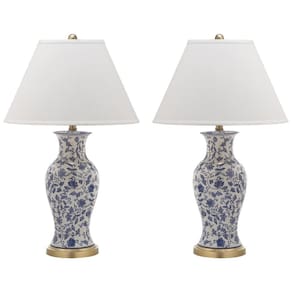 Esta luminária com design de urna floral de Pequim traz o charme clássico da Chinoiserie em azul e branco, adornada com flores e trepadeiras elegantes. Feita de cerâmica esmaltada, a peça é destacada por uma base e pescoço em ouro antigo, oferecendo um brilho quente e atraente que complementa perfeitamente salas tradicionais.