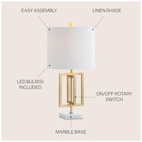 Esta luminária de mesa combina um design contemporâneo e luxuoso com uma estrutura geométrica em latão e uma base que imita mármore. Com um cordão de seda e um remate de latão, ela exala elegância de ponta a ponta. Com 51 cm de altura, é ideal para colocar sobre uma mesa, armário ou mesa lateral.
