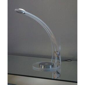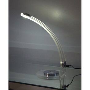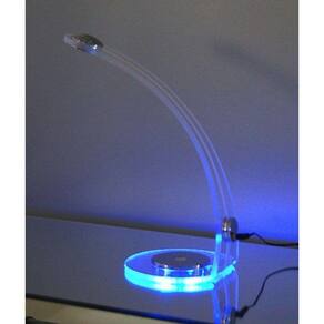 Abajur luminária de mesa eros de led touch em acrilico 2w Luminária de leitura e abajur com design moderno e arrojado, fabricado em metal cromado com a base em acrílico com iluminação em led azul de 6 pontos de 0,1w na base criando um efeito aconchegante, com a iluminação em led branca de 2w, o acendimento se faz por toque na base em que se escolhe por estágios acender somente a base azul ou acender somente a luz branca ou acender as duas luzes juntas. É indicado para quartos, salas, escritórios, home office. Abajur de led 2w + 1w cromado com acrílico transparente, acendimento por toque em 4 fases. Módulo de led já acompanha a peça. Produto montado. Medidas: h 33 cm - l 16 cm - p 26 cm. Bivolt.