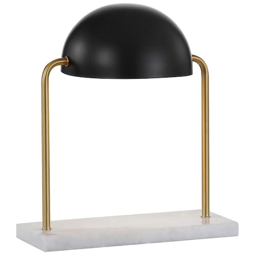 Este abajur moderno, inspirado no estilo Art Deco, traz um toque de sofisticação com seu acabamento metálico em latão dourado e design minimalista. A luz é direcionada para baixo por meio de um abajur de metal preto com acabamento fosco, montado sobre uma base de mármore. Perfeito para mesas e escrivaninhas, essa luminária adiciona um charme elegante a qualquer ambiente.