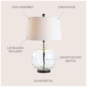 Este abajur de mesa é uma peça clássica e elegante para a decoração da sua casa. Com um design sofisticado, ele combina um vidro texturizado e torneado com uma cúpula de tambor em linho branco. O cordão envolto em seda e o acabamento preto permitem que ele se harmonize facilmente com qualquer paleta de cores. Com 67 cm de altura, é perfeito para destacar em qualquer ambiente, especialmente em uma mesa lateral.