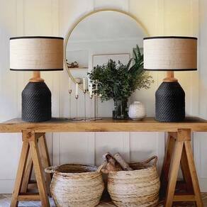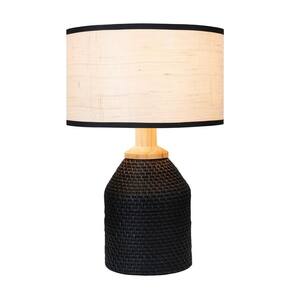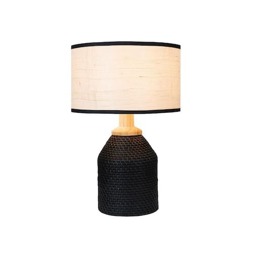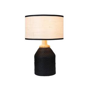 Abajur / Luminária De Mesa O'thentique Modelo Moda Com Rattan Luminária de mesa, para ornamentação e iluminação, com bocal para lâmpada comum (E27), tensão bivolt, base de rattan preto com barbante preto e cúpula arredondada de linho áspero branco com bordas pretas, referência 103266/590117. Medidas do Produto- Cúpula: 35cm x 35cm x 21cm (C x L x A)- Base: 20cm x 20cm x 41cm (C x L x A)- Altura Total: 53cm Informações Técnicas:- Material: Rattan - Linho- Cor: Preta - Branca- Tensão: Bivolt Marca: O'Thentique