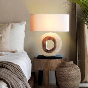 Abajur / Luminária De Mesa O'thentique Modelo Nature's Own Luminária de mesa, para ornamentação e iluminação, com bocal para lâmpada comum (E27), tensão bivolt, base de madeira natural e cúpula oval de linho cor marfim, referência 210587/590033. Medidas do Produto- Cúpula: 20cm x 55cm x 23cm (C x L x A)- Base: 20cm x 28-35cm x 47cm (C x L x A)- Altura Total: 61,5cm Informações Técnicas:- Material: Madeira- Cor: Natural- Tensão: Bivolt Marca: O'Thentique