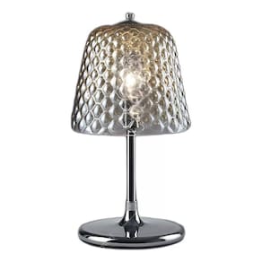 Abajur Luminária Vidro Metal Fumê 47cm - Prateado