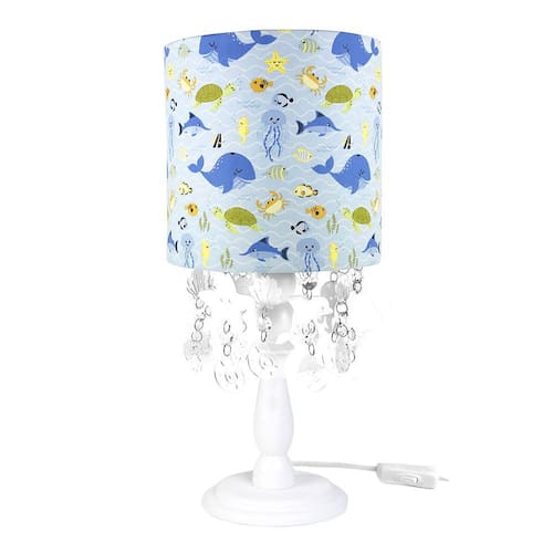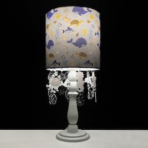 Sonhando com o quarto de bebê perfeito Este abajur é a mistura ideal entre o belo e o funcional, com um design exclusivo desenvolvido para mamães e papais exigentes que não abrem mão de decorar com estilo e bom gosto Dados TécnicosAbajur com base de madeira laqueada decorado e cúpula forrada com tecido.A decoração é feita com castanhas de cristais, peças e gotas de acrílico pendurados na parte interna do abajur. Lâmpadas SuportadasEconômicas/ LED: Qualquer LâmpadaIncandescente amarela : Até 40w por Soquete Medidas do AbajurDiâmetro da base: 12.5 cmAltura: 30 cm Medidas da CúpulaDiâmetro da Parte Debaixo: 20 cmDiâmetro da Parte de Cima: 20 cmAltura: 20 cmAltura Total: 45 cm
