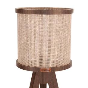 INFORMAÇÕES TÉCNICAS DO ABAJUR TRIPÉ EM ACABAMENTO IMBUIA - Proteção antiesmagamento na tela difusora de luz; - Proteção antiderrapante no tripé; - Tela sintética lavável, que facilita a limpeza da peça; - Cabo condutor com passagem pelo tripé; - Interruptor com acionamento por click; - Soquete para lâmpada E27; - Lâmpadas: 1 (não acompanha); - Lâmpada Led até 15W; - Lâmpada de filamento.
