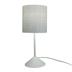 Abajur de mesa com base plástica na cor branca. Cúpula em tecido mesclado cinza e branco.Base em material plástico. Cúpula medindo 14,5 cm x 15 cm.Altura total: 34 cm Largura total: 14,5 cm Bivolt Usar lâmpadas fluorescentes ou de LED. Fio branco com plug liga e desliga. Soquete E-27.Ficha técnica- Diâmetro total: 14,5 cm- Cor da base: Branco- Largura total: 14,5 cm- Cores: Branco e cinza- Altura total: 34 cm- Cor do abajur: Cinza- Material da base: Plástico
