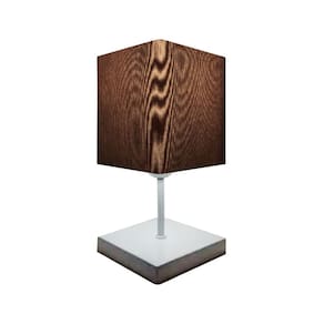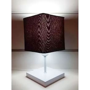 Abajur Quadrado de Mesa Md-2008 Base Branco Cúpula em Tecido 15/13x13cm Café - Bivolt