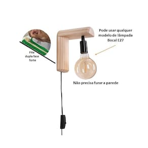 Feita em madeira de alta qualidade, a luminária é autoadesiva, permitindo uma instalação simples e rápida em qualquer parede. Sua capacidade para uma lâmpada e compatibilidade com diferentes tipos de fontes de luz, como LED, incandescentes e fluorescentes, garantem versatilidade e eficiência na iluminação do seu espaço.