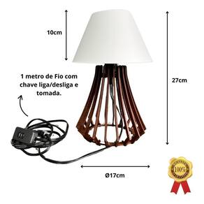 Ficha técnica: Cor das cúpula: preto Medidas com a cúpula: largura: 17cm / altura: 27cm Materiais: madeira mdf com dupla pelicula amadeirada Fio de 1 metro Alimentação: bivolt 110v / 220v Potência: 100 w Ambientes: quarto, sala Capacidade de lâmpadas: 1 Tipos de fontes de luz: soquete e27 Tipo de soquete: e27 Marca: Não Informado Ean: 7893464244065