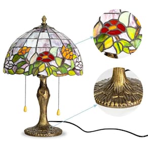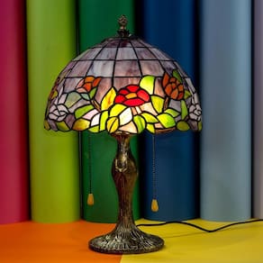 Abajur Tiffany Cúpula Vitral Liga/Desliga De Mesa 45x15cm