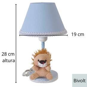 O Abajur Infantil Bebê Quarto Criança Azul Safari é perfeito para deixar o ambiente do quarto do bebê ainda mais charmoso e funcional. Com um lindo ursinho na base, esse abajur em tecido é ideal para iluminar o quartinho na medida certa e facilitar as mamadas e trocas noturnas.