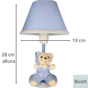 O Abajur Infantil Bebê Quarto Criança Azul Soneca Urso Claro é perfeito para deixar o quarto do bebê encantador e funcional. Com um lindo ursinho na base, esse abajur em tecido é ideal para iluminar o ambiente na medida certa durante as mamadas e trocas noturnas.
