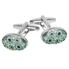 Material: cobre Tamanho: 18 mm × 12,5 mm Peso: 13 g Design oval elegante: essas abotoaduras apresentam uma forma oval refinada com um padrão ousado de esmalte azul e preto, oferecendo uma aparência contemporânea e atemporal. Material de cobre premium: Feitas de cobre de alta qualidade, essas abotoaduras são duráveis e projetadas para manter o brilho e a cor ao longo do tempo. Ideal para ocasiões formais: perfeitas para casamentos, reuniões de negócios e reuniões formais, essas abotoaduras adicionam um toque sofisticado a qualquer traje. Compactos e elegantes: medindo 18 mm x 12,5 mm, eles alcançam o equilíbrio perfeito entre elegância e sutileza, garantindo uma aparência polida. Acessório versátil: essas abotoaduras combinam facilmente com vários estilos e cores de camisa, tornando-as uma adição essencial ao guarda-roupa de qualquer homem moderno.