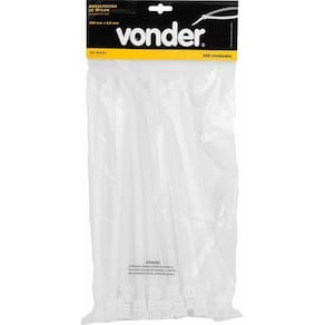 Conteúdo da Embalagem:1 Blister com 100 abraçadeiras de nylonDescrição:Abraçadeira de nylon, branca, 280 mm x 9,0 mm, VONDERAplicações e dicas de uso:Indicada para fixar e organizar fios, cabos, entre outros. Também conhecida no mercado como abraçadeira, fita de nylon e abraçadeira plástica.Destaques e diferenciais:Produzida em nylon 6.6 que proporciona maior resistência à tração. Conta com proteção UV que garante maior vida útil.Características Técnicas:Cor da abraçadeira: Branca Largura da abraçadeira de nylon L : 9,0 mm Comprimento total da abraçadeira de nylon C : 280 mm Espessura da abraçadeira E : 2,0 mm Tipo de nylon: 6.6garantia legal: 90 dias Ean: 7893946552350