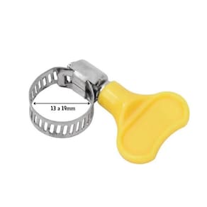 ESPECIFICAÇÕES TÉCNICAS: Faixa de diâmetro ajustável: de 13 mm a 19 mm. Sistema de aperto: manual com borboleta plástica. Aplicações: hidráulica, automotiva, jardinagem, ar comprimido, entre outras.