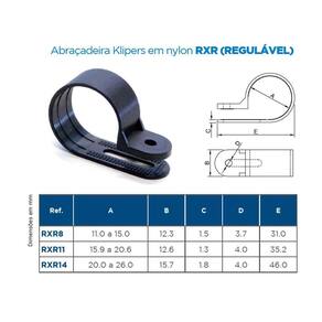 Abraçadeira Cinta Plastica Fixadora 15,9 A 20,6Mm Pct 50 Unid Abraçadeira para Fixação ou Amarração de Mangueiras, Chicotes Elétricos ou Cabos de energia, componentes com a utilização de prego ou parafuso para fixação.Fabricada em Nylon 6.6Dimensões em mm-40C a 85CUL 94 V-2Nylon 6.6 Disponivel na cor PretaNeste anuncio ofertamos a Abraçadeira Fixadora RXR11 15,9 a 20,6mm - 50pçs