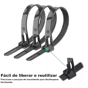Abraçadeira Cinta Plastica Reutilizavel 7,6 X 150mm 50 Pçs A cinta abraçadeira média, popularmente conhecida como abraçadeira, possui um comprimento de 7,6x150mm e é feita de nylon 6.6  A205F , o que garante uma boa resistência mecânica. Reutilizável: - Abraçadeiras de plástico removíveis Adota um design de fivela do tipo solto, o que resolve o problema de que as abraçadeiras comuns só podem ser usadas uma vez. Como usar: - Basta pressionar o nó corrediço. As braçadeiras de zíper abrem e fecham fácil e rapidamente para que você possa adicionar ou remover cabos. Quantidade Embalagem: - 50 Abraçadeiras de Nylon Reforçada Reutilizável  Cinquenta Peças  Material: - Nylon 66 Medidas: - 7,6mm x 150mm Cor: - Preto Abraçadeiras multiuso: - As braçadeiras de plástico podem ser usadas para prender cabos de internet, cabos de computador, cabos USB móveis, cabos de guitarra, cabos de TV, cabos de extensão, cabos externos e muito mais. - As braçadeiras de plástico podem ser usadas para pendurar, segurar, prender, selar e amarrar praticamente qualquer coisa, tornando-as ideais para todas as coisas de primavera que você deseja cuidar. - As braçadeiras de plástico também são perfeitas para uso em jardinagem, para prender acessórios de bicicleta, para prender coisas ao seu equipamento, como uma garrafa ou lanterna, para servir como zíper de pano ou bolsa, para consertar cercas, para prender luzes à sua pérgola externa, etc. - Ideal para prender Fios, Cabos e Mangueiras - Fixação de Chicotes e Lacre de Embalagens - Cabos de Rede