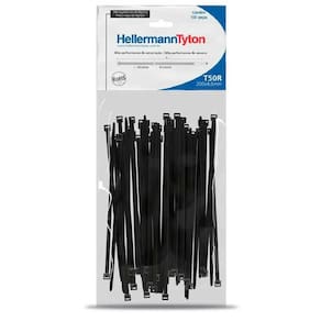 Abraçadeira de nylon hellermann tyton Alta performance de amarração Amarração de fios e cabos, entre outras aplicações. Material: poliamida 6.6 pa6.6 Cor: preta Medida: 200 x4,6 mm Diâmetro max. De amarração: 50mm Tensão min de ruptura: 22 kgf Embalagem com 100 peças Ean: 7890176006424