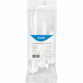 Abraçadeiras em nylon do tipo pa66 para uso diverso,brancas , embalagem com 100 unidades sendo :2.5100mm largura x comprimento Embalagem: pct.C/100 Abraçadeira Nylon Pa66 2.5x100 Branco - Elgin Abraçadeiras do tipo PA66. Ideais para a organização e junção de fios em ligações elétricas e eletrônicas. Com proteção UV preta . Marca: Não Informado