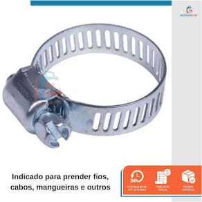 A Abraçadeira Rosca Sem Fim é ideal para a maioria das utilizações industriais e desenhadas para cobrir uma ampla variação de diâmetros, podendo com isto, compensar variações de diâmetros dos bocais e mangueiras. Indicada para o uso doméstico e industrial, são utilizadas para obter a máxima performance e segurança na fixação de tubos e mangueiras.