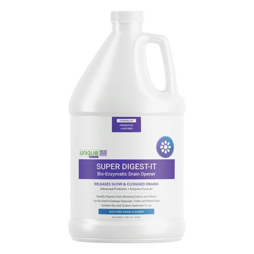 Unique Super Digest-It — Abridor de drenagem bioenzimático livre de ácido e removedor de entupimentos para uso doméstico (3,785 ml)