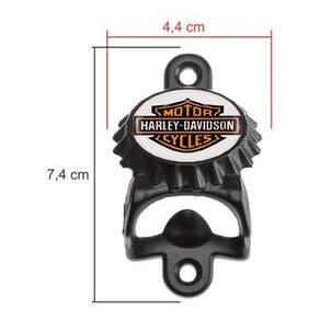 Abridor Tampa Harley DavidsonAbridor de garrafas de parede em metal, super estiloso, um pequeno detalhe que faz a diferença em seu ambienteSuper resistente, vai se tornar o acessório preferido do seu espaço.PINTURA: Epóxi os diferenciais de uma tinta epóxi são sua alta resistência à umidade e produtos químicos, alta durabilidade e resistência à abrasão, além de ótima aderência aos mais diversos tipos de superfícies, suportando fluxo intenso de maquinários e pessoas, além de facilidades na limpeza e manutenção. Sua aplicação pode ser realizada em estruturas e superfícies metálicas, azulejos, cerâmicas, pisos, madeiras não resinosas e alvenarias DIMENSÕES:Comprimento: 7,4 cm.Largura: 4,4 cm.MATERIAL:Zamac. O Zamac é uma liga metálica composta por 4 elementos, também responsáveis pela origem do seu nome: Zinco, Alumínio, Magnésio e Cobre. Marca: Weedstock