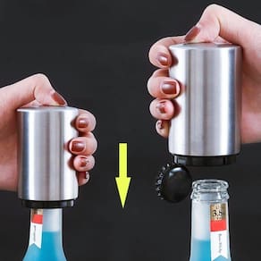 Abridor De Garrafa Magnético Com o Abridor magnético você consegue abrir garrafas com apenas uma das mãos com muita facilidade, ideal para garrafas de cerveja, refrigerantes e garrafas de vidro. Para utilizar o Abridor Magnético é só inserir o abridor no topo da garrafa e retirá-lo logo em seguida, em segundos o imã que contém no abridor remove a tampa abrindo a garrafa. Material: Inox e plástico. Marca: Abridor De Garrafa