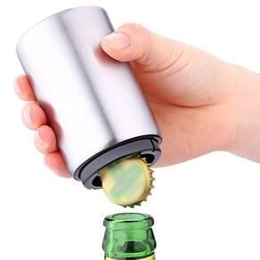 Abridor inovador, fácil, rápido, não entorta a tampa, ótimo para ter em casa, bares e restaurantes, automático e sem esforço. Basta colocar o abridor na garrafa e pressionar a parte superior do abridor. É muito fácil de usar.
