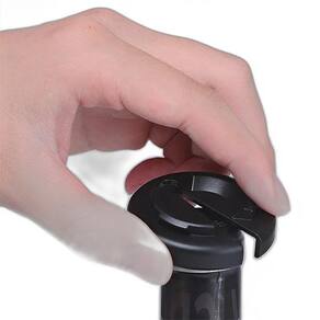 Instruções de uso: 1 - Remova o cortador de lacre e coloque-o no gargalo, segure firmemente com os dedos, gire-o ao redor do lacre de alumínio para remove-lo. 2 - Coloque o fundo do abridor em cima da garrafa de vinho e certifique-se de que permaneça alinhado com a garrafa o mais verticalmente possível. Pressione o botão de extração e segure, pressionando levemente para baixo de 6 à 8s para retirar totalmente a rolha. 3 - Pressione o botão superior e segure de 5 à 7s e a rolha irá sair automaticamente do abridor.