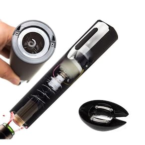Lindo e Moderno Abridor de Vinhos Saca Rolhas Elétrico, com sistema a pilhas, que retira a rolha com maior facilidade sem necessidade de exercer força e correr o risco de quebrar a garrafa.Possui corpo emborrachado e formato ergonômico, para dar maior firmeza na hora de segurar o abridor para sacar a rolha.Para utilizar, basta utilizar a base para remover o lacre da garrafa, posicionar o abridor na boca da garrafa e acionar o botão de baixo, para soltar a rolha do aparelho, basta acionar o botão de cima, e pronto, é só apreciar seu vinho favorito.Especificações:Base com cortador de lacreSistema sem fioFácil de utilizarFunciona com 4 pilhas AA Não Inclusas Material: Plástico, Corpo emborrachado e MetalMedidas Aproximadas: 25cm x 5,5cm Comprimento x Diâmetro Peso total Aproximado: Itens:01 Abridor de Vinhos01 Base com Cortador de Lacre