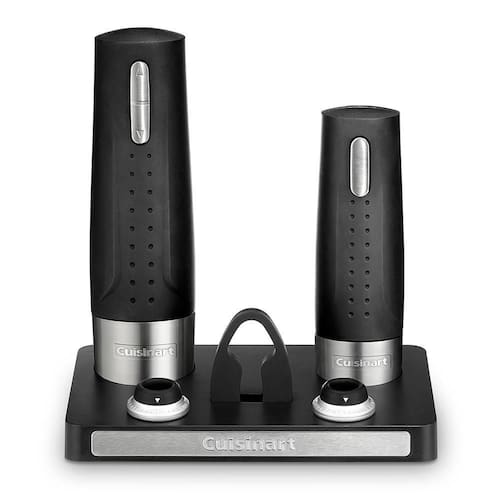 O Wine Center Cuisinart inclui um abridor de vinho elétrico e um preservador de vinho à vácuo, em uma bela base de carregamento. Todos apresentam elegantes detalhes em inox escovado. A unidade também vem com duas rolhas de vinho e um cortador de lacres. O saca-rolhas elétrico remove até 50 rolhas naturais ou sintéticas com facilidade. O preservador de vinho elétrico sela as garrafas para manter o vinho mais fresco por mais tempo. Vem com acessório corta-lacres. Acondicionado em elegante estojo preto. Características Tipo: Abridor de Vinho Elétrico Funções: Remoção de rolhas e fechamento a vácuo para conservação Recomendações de Uso Remoção de rolhas sintéticas e naturais Cuidados e Limpeza Não mergulhar em água, limpar com um pano úmido Especificações Técnicas Modelo: WC-400CDBR Material: Metal e Plástico Voltagem: Bivolt Cor: Preto Garantia: 12 meses Dimensões e Peso Dimensões do Produto sem Embalagem (AxLxP): 200x180x125 mm Dimensões do Produto com Embalagem (AxLxP): 330x320x80 mm Peso do Produto sem Embalagem: 1,53 Kg Peso do Produto com Embalagem: 2,04 Kg Itens Inclusos Base Carregadora Unidade Saca-rolhas Unidade de Vácuo 02 Rolhas Corta-lacres Estojo Manual de Instruções Certificação Inmetro Produto possui certificação de segurança compulsória, certificado pela UL-BR 21.1761, organismo acreditado pela CGCRE do Inmetro.