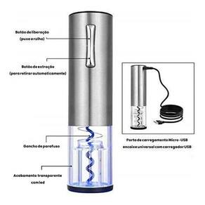 Abridor De Vinhos Saca Rolha Inox Recarregável Usb