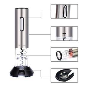 Abridor de vinhos saca rolhas elétrico automático com suporte para cortador de lacre, recarregável com acabamento em inox premium.