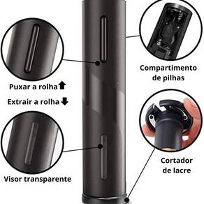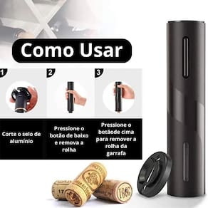 remove facilmente a rolha em poucos segundos manuseio suave com fino acabamento acompanha cortador de lacre utiliza 4 pilhas aa as pilhas não acompanham o produto Marca: Eletric Wine Opener