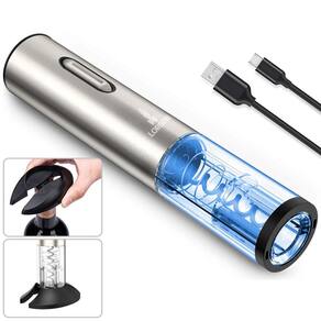 O Abridor de Vinho Saca Rolha Elétrico, com bateria recarregável, é um item essencial no bar ou cozinha, pois garante que você abra qualquer garrafa de forma segura e fácil, sem acidentes ou imprevistos. Retira as rolhas com maior facilidade sem necessidade de fazer força e correr risco de quebra da garrafa. Basta apertar um botão. Possui também luzes led indicadores de operação, o que torna o abridor ainda mais bonito.• Fácil de usar• Sem fio, funciona com bateria recarregável e acompanha cabo carregador USB• Ergonômico, encaixa-se perfeitamente na palma das mãos• Desenhado para se encaixar em, praticamente, qualquer tipo de garrafa de vinho tradicional• Tempo aproximado para abertura de cada rolha: 7 segundos• Vem com uma base que também é um corta-lacre• Capacidade: abre mais de 30 garrafas com a bateria completamente carregada• Tempo de recarga da bateria: 8hMarca: LorbenMaterial: Plástico e aço inoxCor: PrataVoltagem: Bivolt (110V ou 220V)Tensão nominal: 6VInclui:1 Abridor elétrico1 Base1 Carregador USBTamanho do produto: 19,5x4,5x4,5cmPeso do produto: 315gTamanho da embalagem: 25x10,5x8,5cmPeso da embalagem: 425gCódigo do produto: 883Fotos meramente ilustrativas. Tonalidades podem variar.